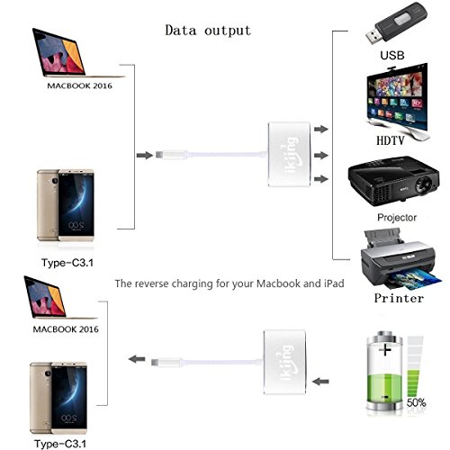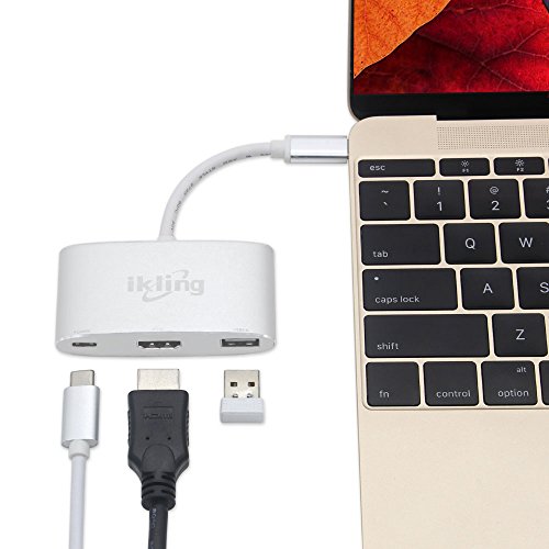 ikling USB Type C 4K/30Hz HDMI Digital AV Multiport Adapter with USB C Charging port for 2016 MacBook Pro, MacBook 2015/2016, Chromebook Pixel and More