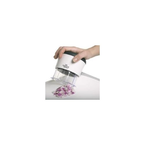 -. Feature : *compact size for convenient storage / *chops onions, carrots, peppers, nuts and more / *Ergonomic softgrip lid / *Full size chopping area