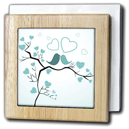 -. Brand : 3dRose -. Feature : Dimensions (in inches): 6 x 6 / Includes 2 - 4" x 4" high gloss ceramic tiles / Made out of solid wood / Tile panels connected by wooden dowels / Some assembly required -. Label : 3dRose LLC -. Manufacturer : 3dRose LLC -. ProductGroup : Kitchen -. ProductTypeName : KITCHEN -. Publisher : 3dRose LLC -. Studio : 3dRose LLC -. Title : 3dRose Anne Marie Baugh Hearts - Two Kissing Love Birds and Hearts In Turquoise - Tile Napkin Holders