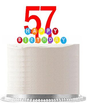 Item#057WCD - Happy 57th Birthday Party Red Cake Topper & Rainbow Candle Stand Elegant Cake Decoration Topper Kit