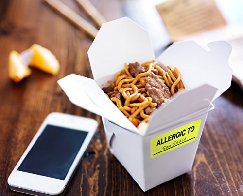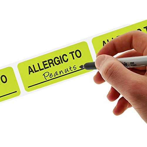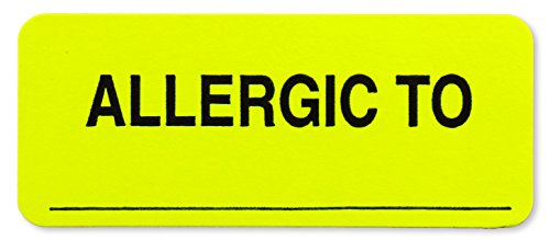 "Allergic To" Fluorescent Yellow Stickers with Write-on Surface | 1" x 2-1/4" | 250 Labels per Dispenser Box | Permanent Adhesive