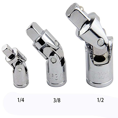 Kinsports Impact Universal Joint Set,use with Impact Wrenches and Drills in Auto and Construction Work Set Adapter Sizes,1/4, 3/8 and 1/2-Inch Drive,3-Piece