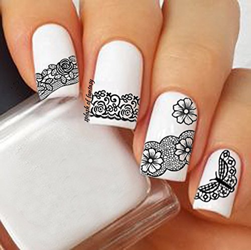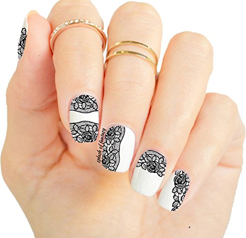 7 packs of Black Lace Floral Nail Art Water Tattoo Decals for Elegant Nail Art