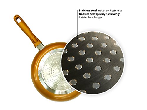 Each of these red copper pan is crafted individually, and the inner mirror, stylish copper polish is gorgeous. It provides extra durability, wear-resistance and warp-resistance. Durable nonstick coating allows you to cook with minimal oils or fat.
