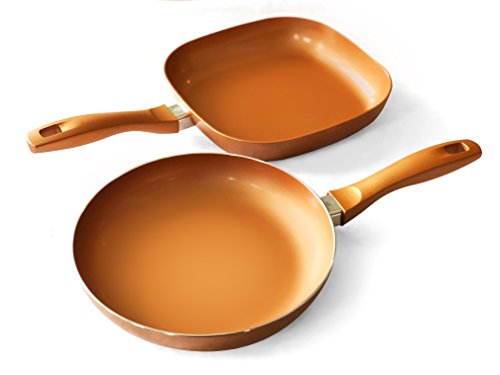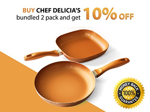 Cooking is a breeze with convenient and long-lasting features delivered by our Chef Delicia 9.5'' round and square non-stick frying pans. With this set of frying pans, we can satisfy you with:
