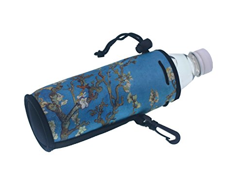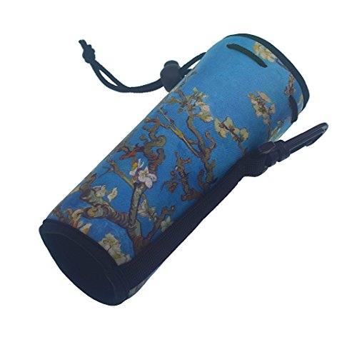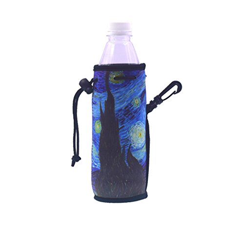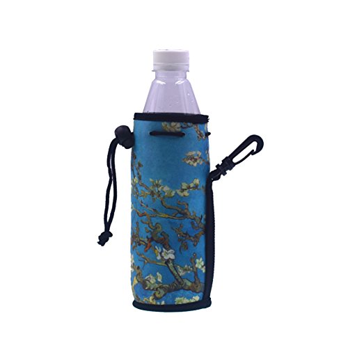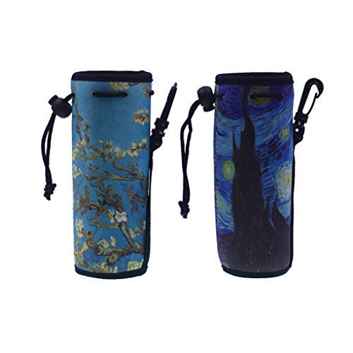 E - Living 500ML (16.9 OZ) Collapsible Neoprene Water Bottle Drawstring Cooler / Coolie / Cover / Insulator / Holder / Huggie / Sleeve - 2 Pack (10 Colors) (Almond Blossom & Starry Night)