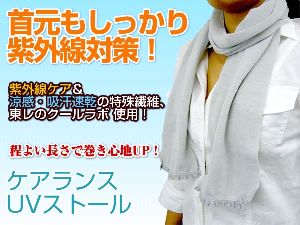 気になる首元もカバーできるUVストール!紫外線ケア&涼感・吸汗速乾の特殊繊維を使用、しっかりUVカットしながら通気性もよく巻き心地GOOD♪エアコン対策、おしゃれアイテムとしても使えます!