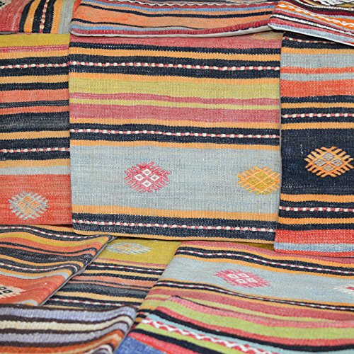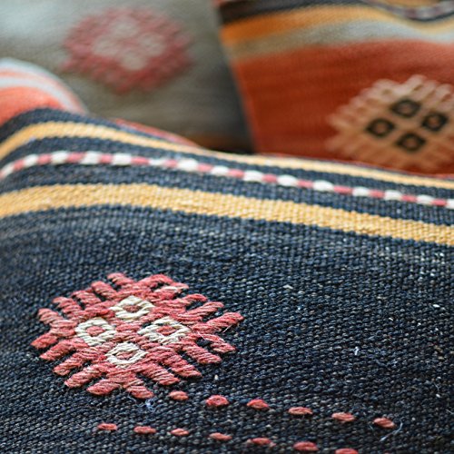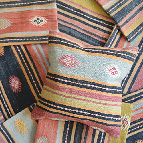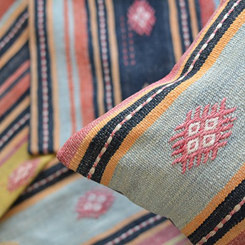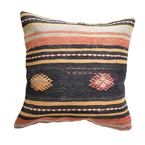 Unique Handmade Decorative KILIM PILLOW COVER. Multiple Designs, 100% Woven, from Turkey. Authentic boho home DECO. Colorful case cushion with HIDDEN ZIPPER 16×16”/ 40×40 cm (Descubre)
