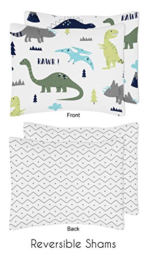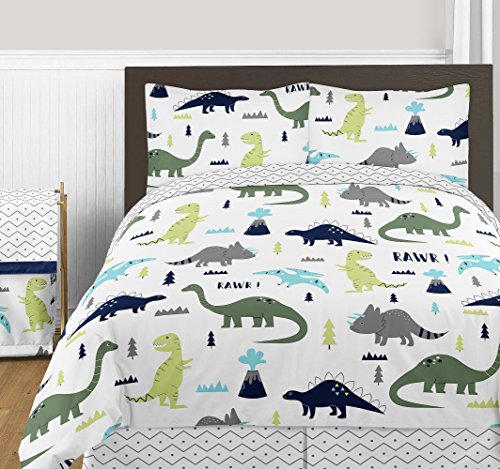 Navy Blue and Green Modern Dinosaur Boys or Girls 3 Piece Full / Queen Bedding Childrens Teen Set