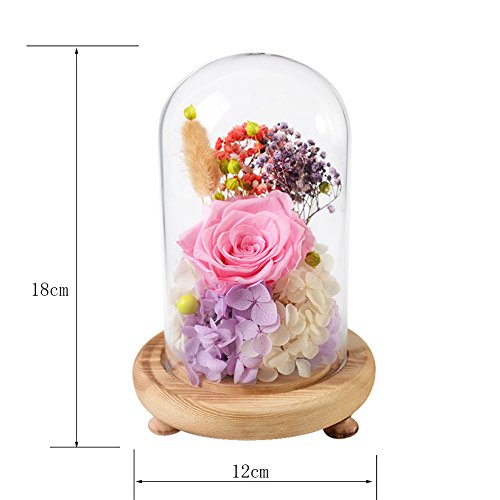 - You will see real rose flower with real leaves decoration in a Luxury Glass on a wood base; Size: Diameter:12cm High:18cm