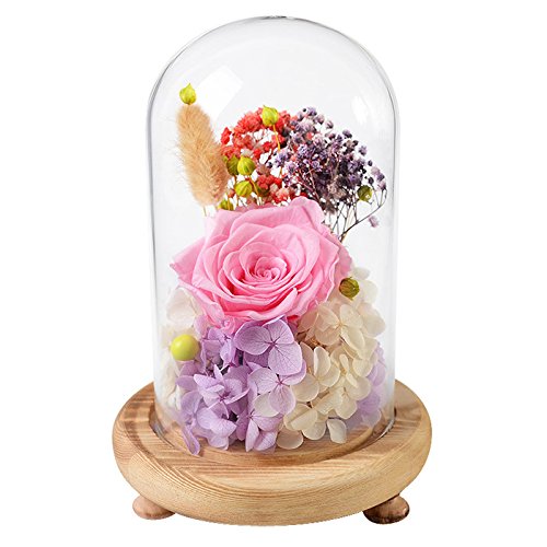 Forusky Beauty And The Beast Preserved Fresh Flower Glass Immortal Rose Flower Gift for Lover Birthday,Anniversary Gifts,Valentines Gifts,Wedding Anniversary Gift - Pink