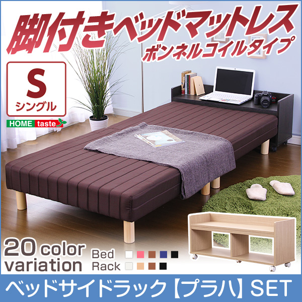 脚付きマットレスベッド【-Parnet-パルネ】(ベッドサイドラックセット)(ボンネルコイル・シングル用)