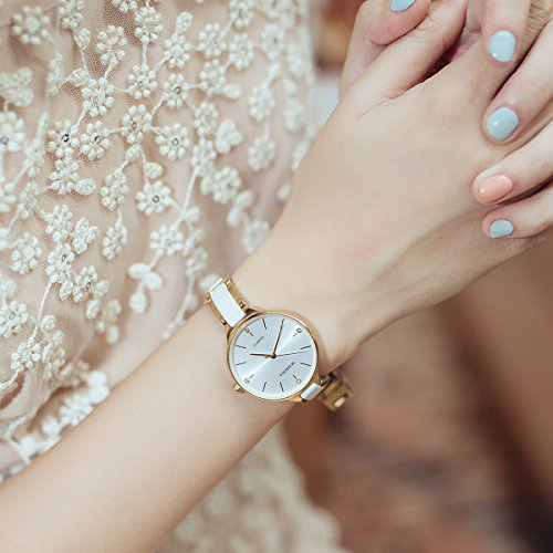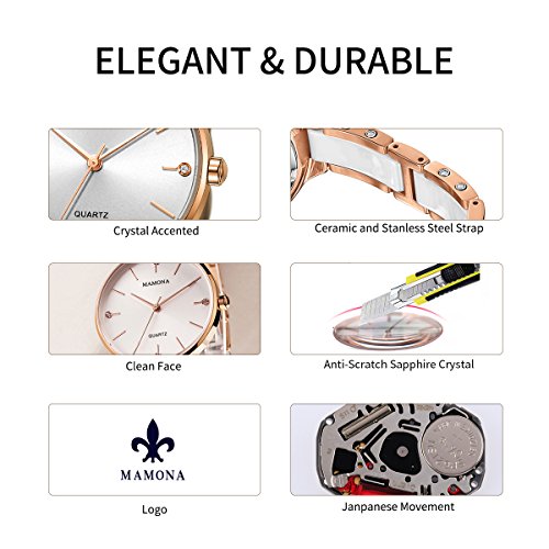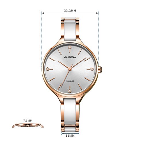 SHOW YOUR PERSONALITY. Sleek, Light, and Extremely Durable, Ceramic is More Than Four Times as Hard as Stainless Steel - With a Pearly, Lustrous Finish that Won't Scratch or Tarnish.Simple and Clean Dial with Crystal Accented. White Ceramic and Rose Gold Stainless Steel Bracelet.Classy and Feminine