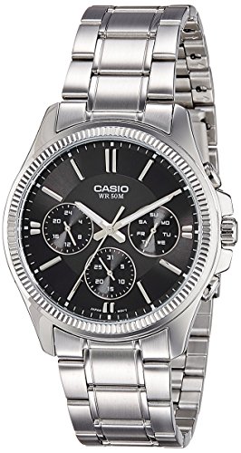 -. Title : Casio #MTP1375D-1AV Men's Metal Band Fluted Bezel Multifunction Black Dial Watch