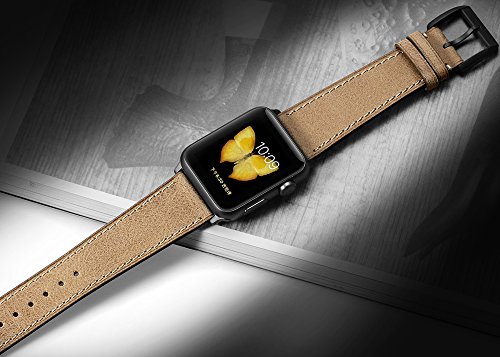 Apple Watch Band 42mm Genuine Calf Leather fit iWatch & Sport & Edition Series 1 Series 2 Super Soft Strap Classic Pin Buckle for Women and Men