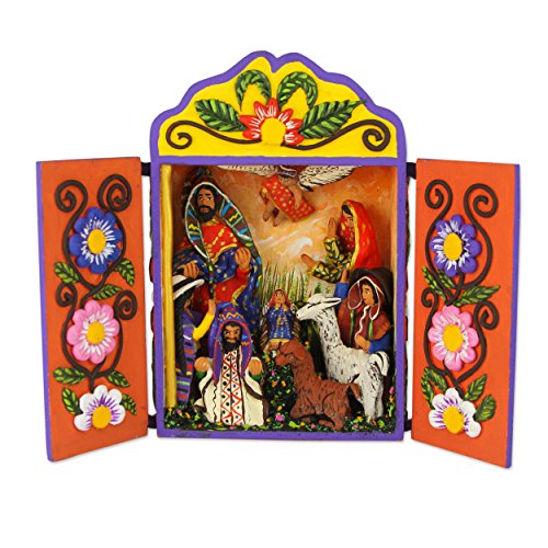 NOVICA "Christmas Joy" Wood And Ceramic Nativity Scene Sculpture