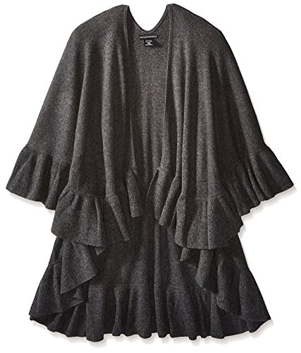 Sofia Cashmere Women's Ruffle Knit Cape, Charcoal