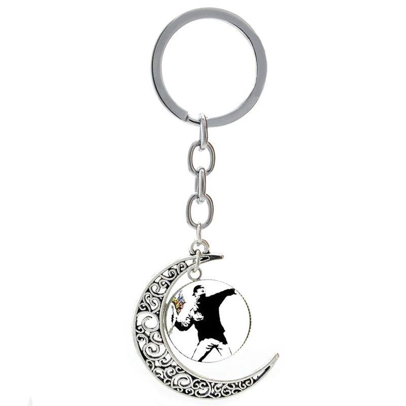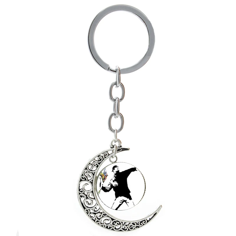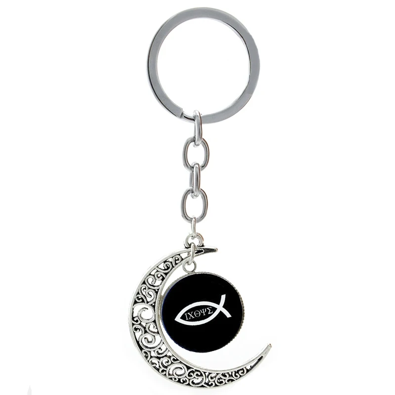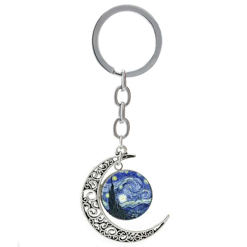 Pendant:Moon, Glass Cabochon Dome Art Picture