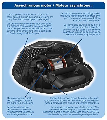 Aquascape AquaForce 1000 Asynchronous Pump with Protective Cage for Ponds and Pondless Waterfalls, 1,070 GPH | 91011