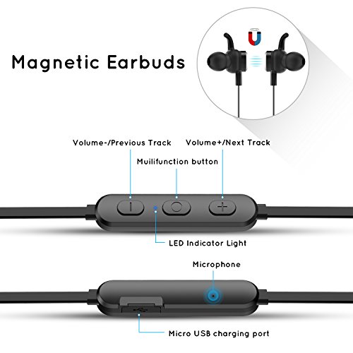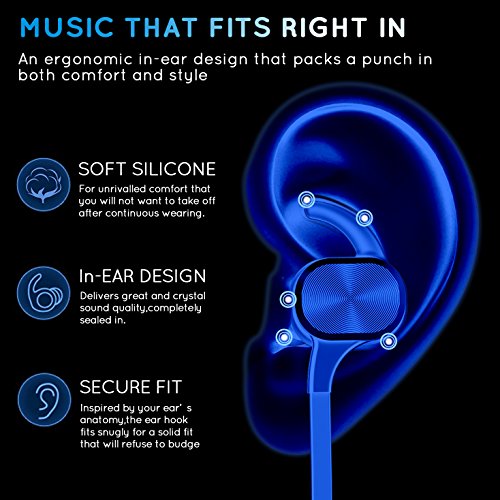 -. Feature : Awesome wireless earbuds with microphone can be stay in your ears comfortablely / Great sound and clear voices with Chewing Sweet Design, bluetooth 3.0 noise cancellation / Pairing is pretty intuitive and will pair with all mobile phone except the phone dont have bluetooth function / Play/pause (also answer calls), Vol +/-, and next/previous track buttons, super easy operation, good workmanship,BQB Certificated / Only need to pair once and easy to pair, beeps when it is running low