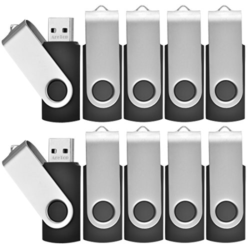 AreTop 10pcs 8GB USB 2.0 Flash Drive Swivel Thumb Memory Stick (Black)