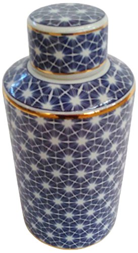 Benzara Fine-Looking Ceramic Covered Jar, Blue/White