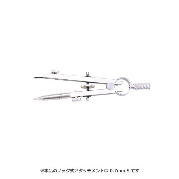 穂先にノック式アタッチメントSを付けたスプリングコンパスです。