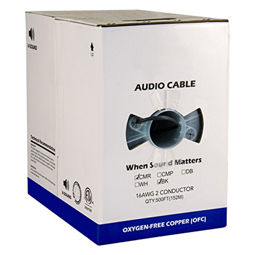 -. Title : Audio Cable, 16AWG, 2 Conductor, 65 Strand, 500 ft, PVC Jacket, Pull Box, Black
