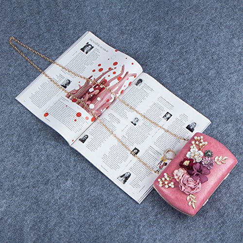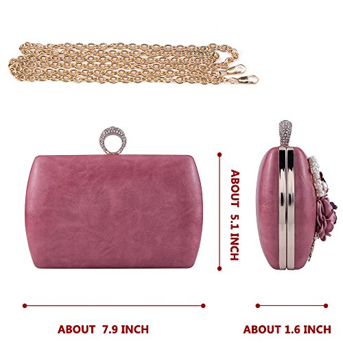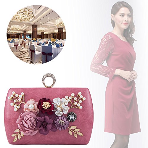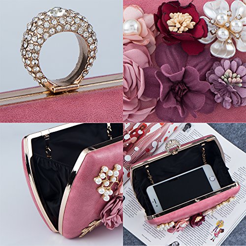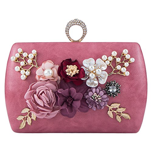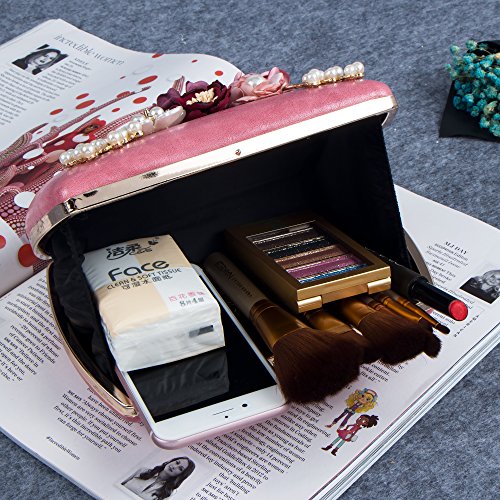 Bagood Women's 3D Flower Handbag Beaded Pearl Clutches Ring Purses Shoulder Bag for Wedding Bridal Prom Party