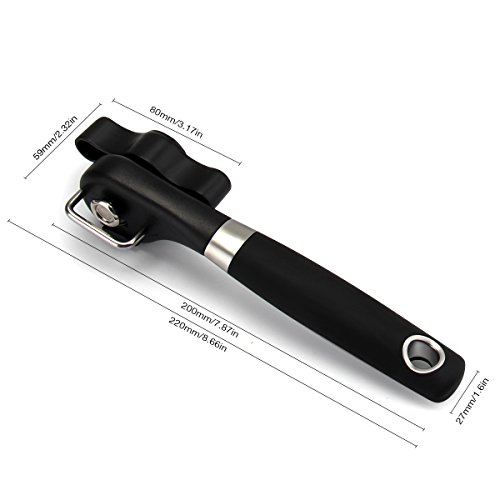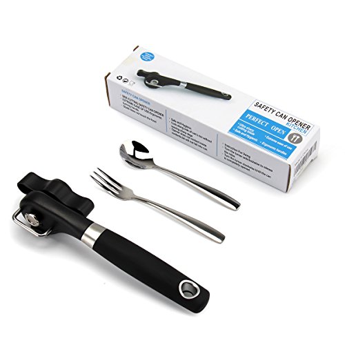 Side Cut Can Opener, Safety Manual Can Opener, Black Smooth Edge Can Opener With Stainless Steel Fork and Spoon