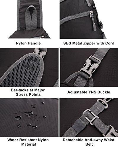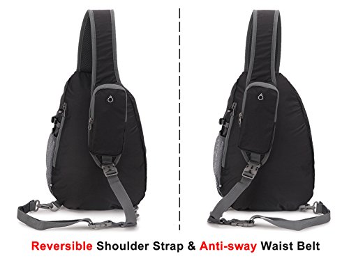 -. Feature : SIZE AND WEIGHT - Size: 15.75 inches (H) x 9.84 inches (W), Capacity: 15L, Weight: 0.5 Pound. / DURABLE AND COMFORTABLE - Strong YNS buckle and SBS zipper; Precise seam and reinforced all contacted place with Bartack Process; Frigostable soft water-resistant Nylon material makes it more lightweight and folds easily; Dilated shoulder strap and Padded back of the bag make it more comfortable to wear. / MULTI-COMPARTMENTS THAT KEEP THINGS ORGANIZED - This bag features an abundance of handy pockets for outdoor activity: two front zipper pockets, one side pocket and one phone pocket with headphone access, one back anti-theft zipper pockets for your important items. The main pocket has an interlayer which is well prepared for your iPad 3/4/5/6 or books or A4 magazine etc. The front pocket has three versatile inter-layers and one key rack that can well organize small necessities. / GREAT DESIGN - The side pocket with adjustable buckle is strong enough to keep water bottles or umbrellas up when crossing over the mess. The shoulder strap pocket with headphone access is convenience for you to put IPHONE 6/7 plus and listen to music. The shoulder strap is adjustable and can be switched to the either side. Anti-sway Waist belt design is good for avoiding waving when you're wearing and it is easy to disassemble also. / IDEAL APPLIACATIONS - Outdoor sports: hiking, biking, camping, cycling, running, mountain climbing; Casual: multiple storage pockets provided are ideal in daily life, travel and leisure field; Fashion: reversible and cross body shoulder strap provides you with various ways to wear.