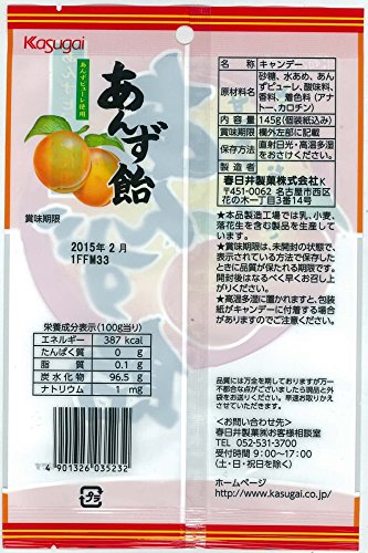 原材料:砂糖、水あめ、あんずピューレ、酸味料、香料、着色料(アナトー、カロチン)