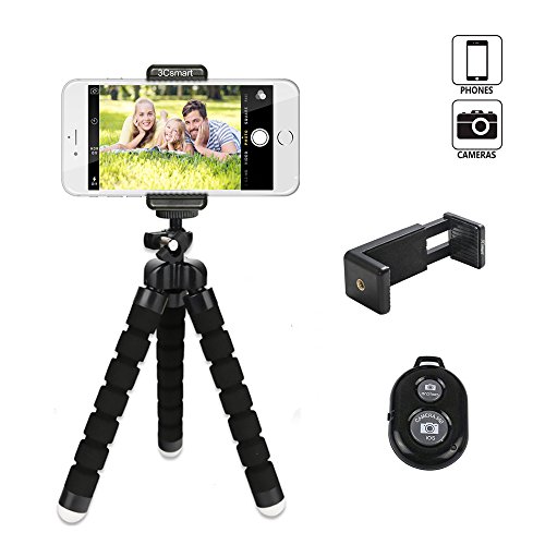3Csmart Octopus Style Portable and adjustable Tripod Stand Holder for iPhone, Cellphone ,Camera with Universal Clip and Remote (Black)