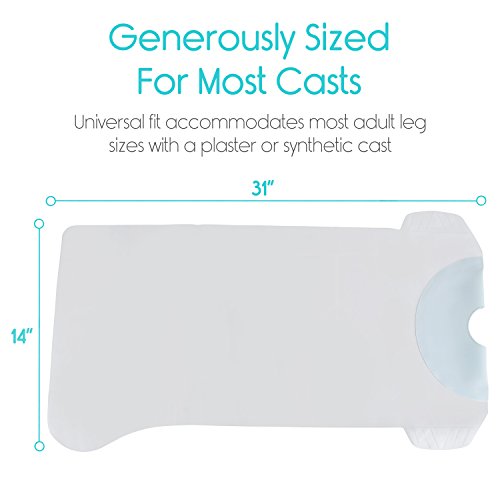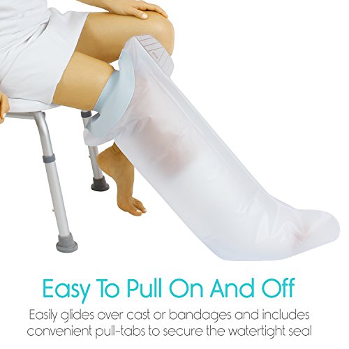 Leg Cast Protector by Vive Providing complete protection against water, sand, dirt and grime, the reusable Vive leg cast protector is constructed with a lightweight, durable composite material that is leak proof and tear-resistant. The leg cast cover easily glides over most adult casts and secures with a watertight seal. Great for showering, bathing, therapeutic care and many outdoor activities. Safely and Convenient Shower or Bathe with a Cast: Easily slide on and secure the Vive leg cast protector before bathing or showering to prevent water from damaging your cast and irritating your skin. The composite material is lightly textured, so you can safely stand in the shower or on any surface with confidence. The cast protector is generously sized to accommodate most adult leg sizes with plaster or synthetic casts. Reusable Protection for Casts, Bandages and Wounds: Reusable cover protects leg casts, bandages, prosthesis, wounds, scrapes, rashes and burns. The durable cast protector repels water, dirt and grime to ensure your leg stays dry and clean. Great for therapeutic care at home or at the hospital, bathing, showering and many outdoor activities. Complete Watertight Seal: Creating a watertight seal, the leg cast protector uses an elastic rubber seal with easy to use pull-tabs to secure it. The protector seals completely to block water, sand, dirt and grime from damaging the cast and irritating the skin. After each use, the seal regains its shape for extensive reusability. Durable, Lightweight Construction: Made with a durable, composite material, each seam is reinforced to create a tear-resistant and leak proof cast protector. What's Included: 0 |