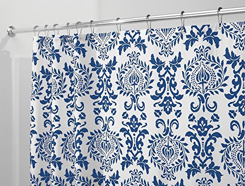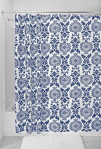 mDesign Damask Fabric Shower Curtain - Long, 72" x 84", Navy Blue