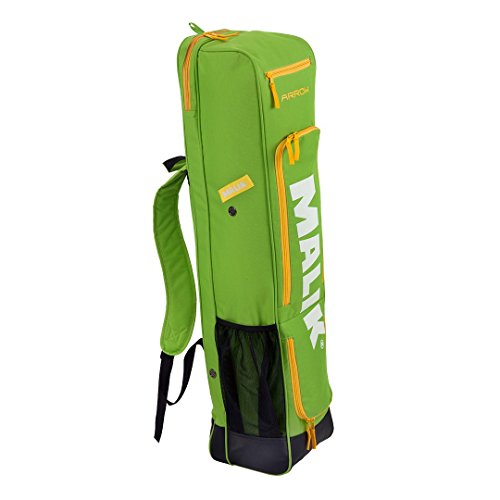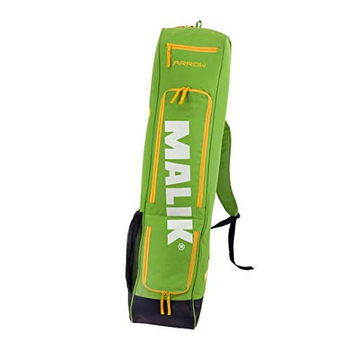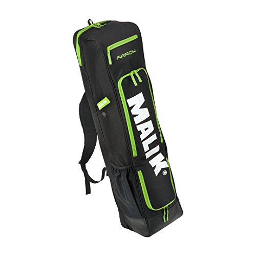 Studio : Malik Publisher : Malik Product Description A new design for 2016 in the ever popular Malik Arrow Bag.It is great bag for match days and training.Features: - A stick compartment that holds up to 4 sticks- 2 separate zipped front compartments, ideal for storing accessories and shinpads.- 1 side compartment for a drinks bottle- small zipped external pocket for valuables- 2 backpack style carry straps for easy transportation- Reinforced base to protect from wet weather conditionsDimensions: 99cm x 22cm x 16cm 0