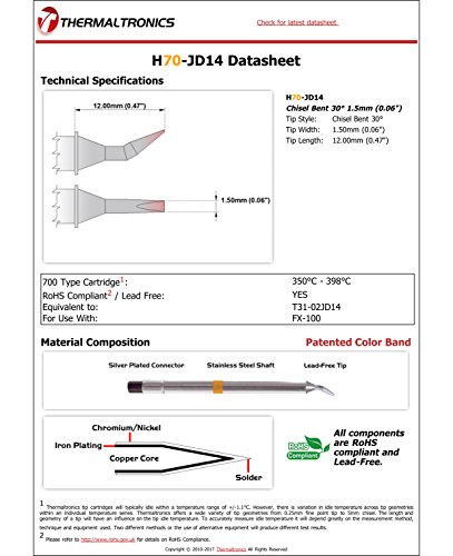 Thermaltronics H70-JD14 Chisel Bent 30deg 1.5mm (0.06") interchangeable for Hakko T31-02JD14