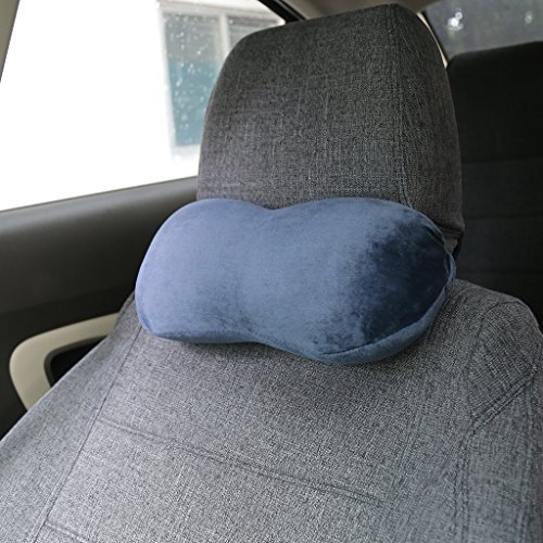 LANGRIA Infinity-Shape Car Neck Pillow Memory Foam Headrest Lumbar Support Cushion for Travel Work Commute, Hypoallergenic, Anti-Bacterial, CertiPUR-US Certified (Navy Blue)