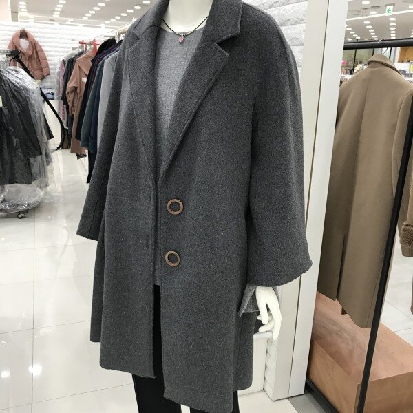 빅단추장식으로 귀여운 A라인코트예요어깨라인이 아래로 빠져서 부해보이지않아요,소매를 접으면7부소매로도 연출이됩니다