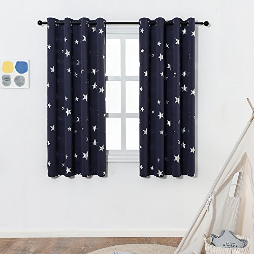 The Anjee curtain set includes 2 panels by 52" wide x 63" (or 84") long each, fits windows of 40" to 70" wide if used together.