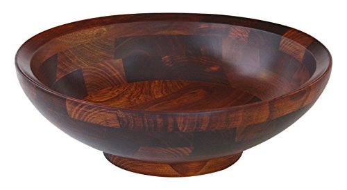- Large wooden serving bowl accented with a unique inverted rim design and dark cherry finish