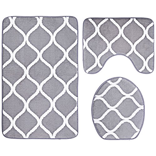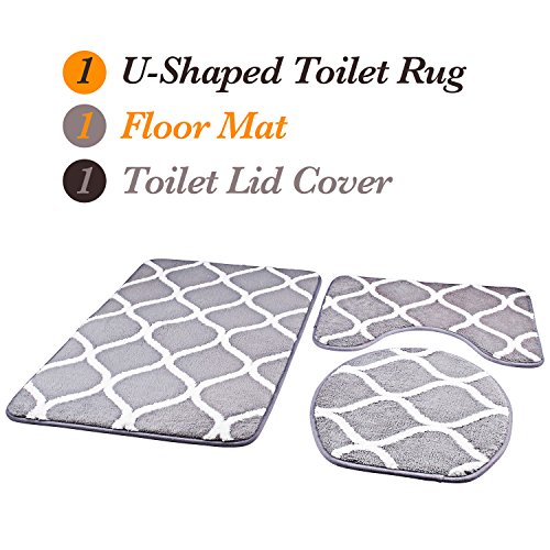 Over the Floor 3-Piece Bathroom Mat Set?Ads Safety and Elegance to Any Bathroom Its top-quality microfiber memory foam delivers a soft touch that you can feel.? The extra absorbent technology retains more water than ordinary mats, leaving your bathroom dry and clean after every use. The non-skid rubber back makes the mat remain in place, delivering an extra layer of safety for the entire family. Easy to maintain, the Non-Slip Memory Foam Bathroom Rug Mat is machine washable. Simply wash on cold water with mild detergent. Do not bleach or dry clean. Tumble dry low or lay flat to dry luxurious and cushiony. Product Dimensions: - Toilet Lid Cover: 15.75” x 17.72”