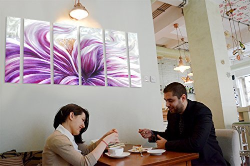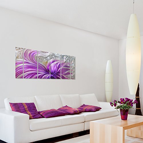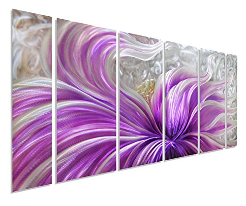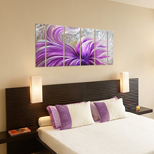 Pure Art Purple Blossoms Flower Metal Wall Art Painting, Large Floral Contemporary Decor, 3D Wall Art for Modern and Contemporary Decor, 6-Panels Measures 24"x 65", Perfect for Home