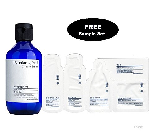 -. Feature : This Pyunkang Yul essence toner comes with 1 full Pyunkang Yul skin care sample kit.( Sample pack from left : Pykang Yul mist toner, moisture serum, moisture ampoule, and moisture cream ) / The essence toner is made with 91.3% Milk Vetch Root Extract to re-energize and replenish your skin. / It provides intense hydration. Simply patting your skin will result in a gummy sensation in which the skin will react with a high level of elasticity / This product is free of artificial fragrances and colors and hypoallergenic to care for your skin without any irritation. / Products backed by Beauty Made USA for its authenticity. (Look for its label on the package as shown on the picture)