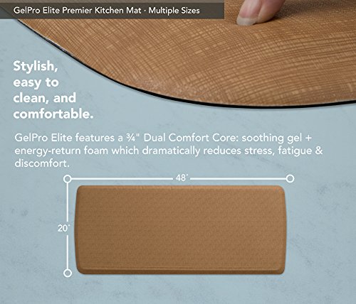 GelPro Elite Premier Anti-Fatigue Kitchen Comfort Floor Mat, 20x48”, Linen Khaki Stain Resistant Surface with Therapeutic Gel and Energy-return Foam for Health and Wellness