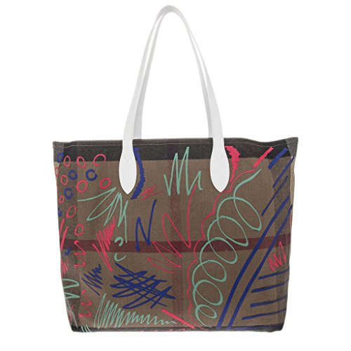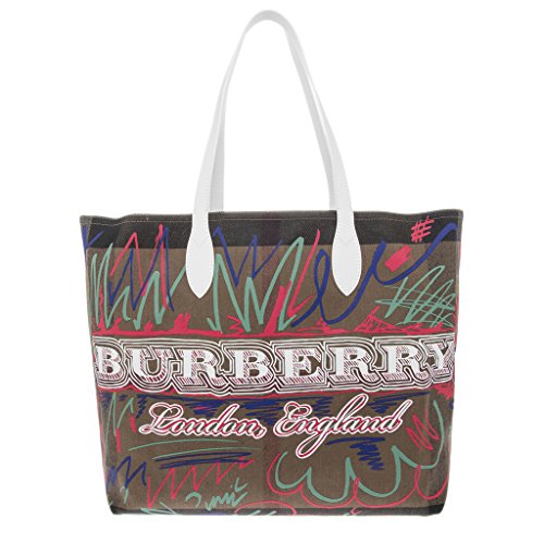Product Description Burberry Women's Doodletote Check Reversible Canvas Tote: Colorful, sketchbook-inspired doodles add whimsical charm over the check-printed background of a roomy over-the-shoulder tote that reverses to a doodle-free variation for two looks in one. Open top. Over-the-shoulder handles. Canvas with leather trim. Made in Italy. Approximately: 14a€ H x 12.5a€ W x 7a€ D. Item cannot be returned without red security tag attached. 0