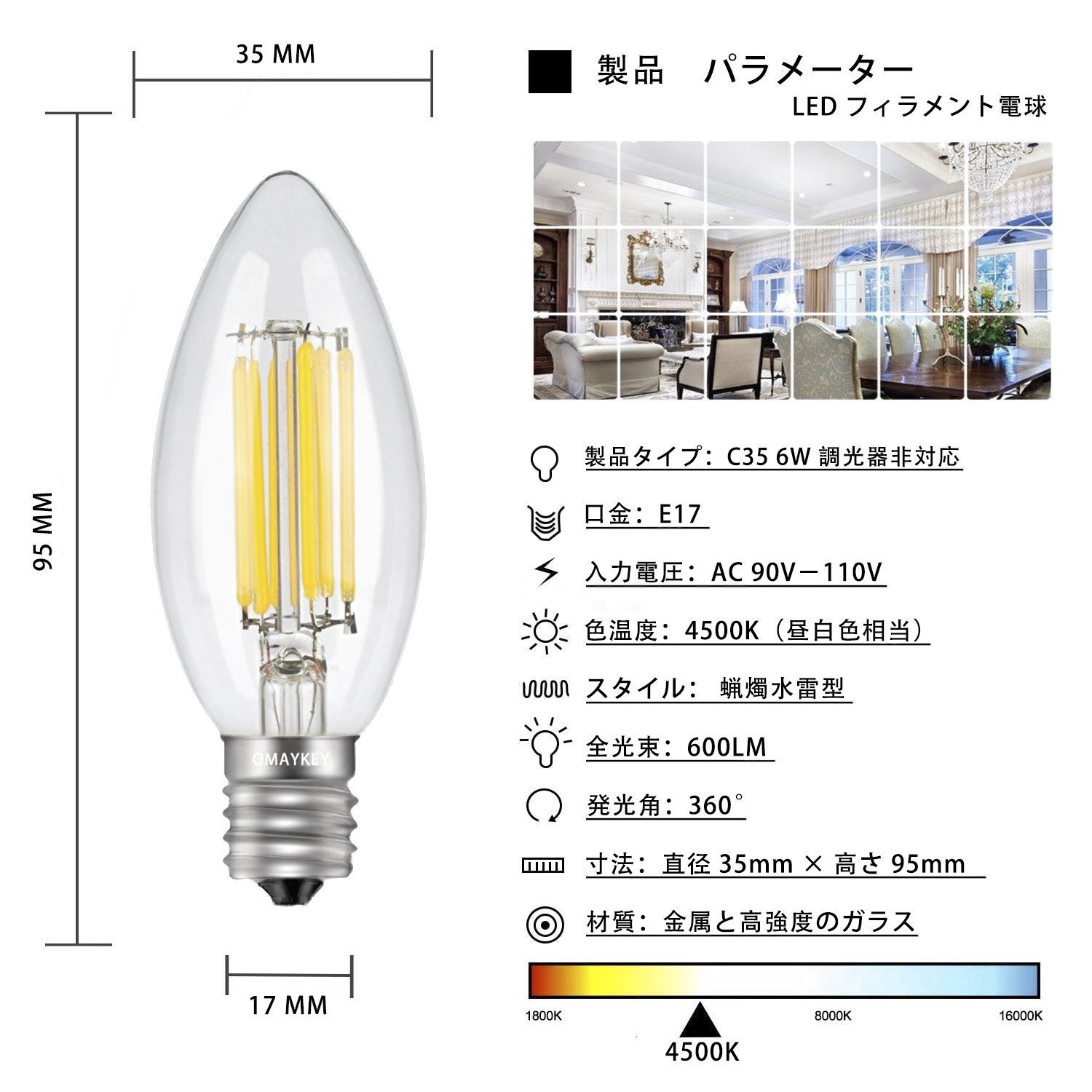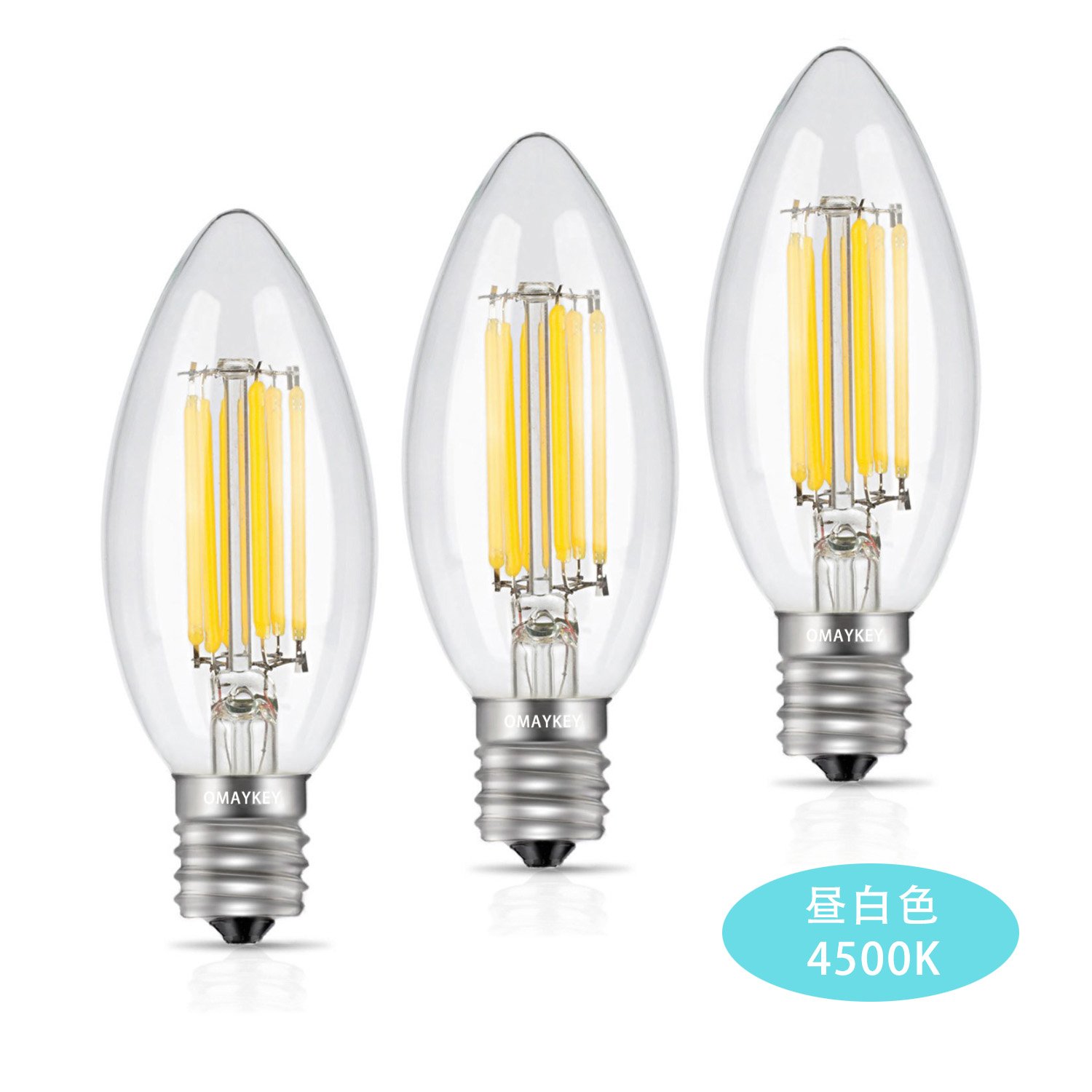 OMAYKEY LED bulb filament 6W (corresponding to 60W type) day white white E17 candle lightning type for chandelier clear glass omnidirectional type dimmer non-compatible 3 pieces