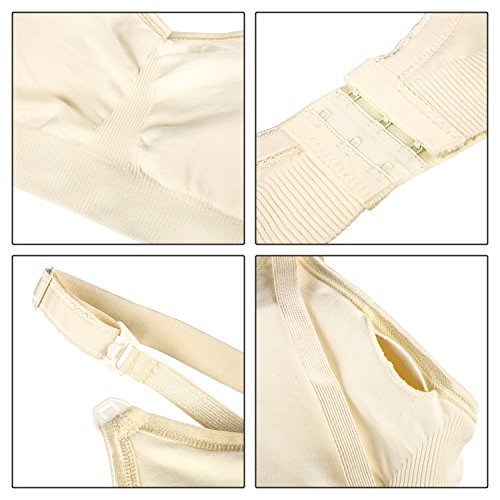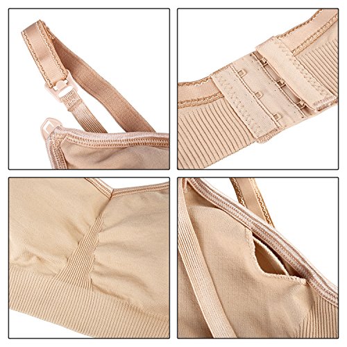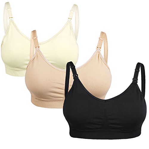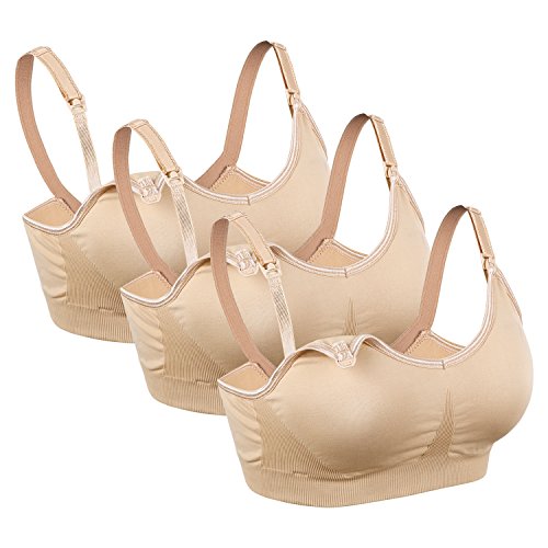 Binding : Apparel Product Description Yolev nursing bras carefully designed for expectant mother and baby. Using high elasticity and buttery-soft Fabric, which makes the bra adapts to a mother's Changing shape and size of breast during lactation. Moreover the drop down cups make it so easy to breastfeeding. SIZE CHART: S: 32A-32C, 34A-34B,36A M: 32D-32DD, 34C-34D, 36B L: 34DD, 36C-36DD, 38A-38C XL:38D-38DD, 40B-40DD Features: Material: 92% Nylon and 8% Spandex. Seamless, wireless nursing bra with adjustable straps. Package Including: 3 pack maternity bras and 3 bra extenders. Package Size:40*20*4cm. Gross Weight: 260g. Service and guarantee: No reason to return within 3 months, any size problem, we would like to exchange the suitable size for you. Thanks for your support! 0