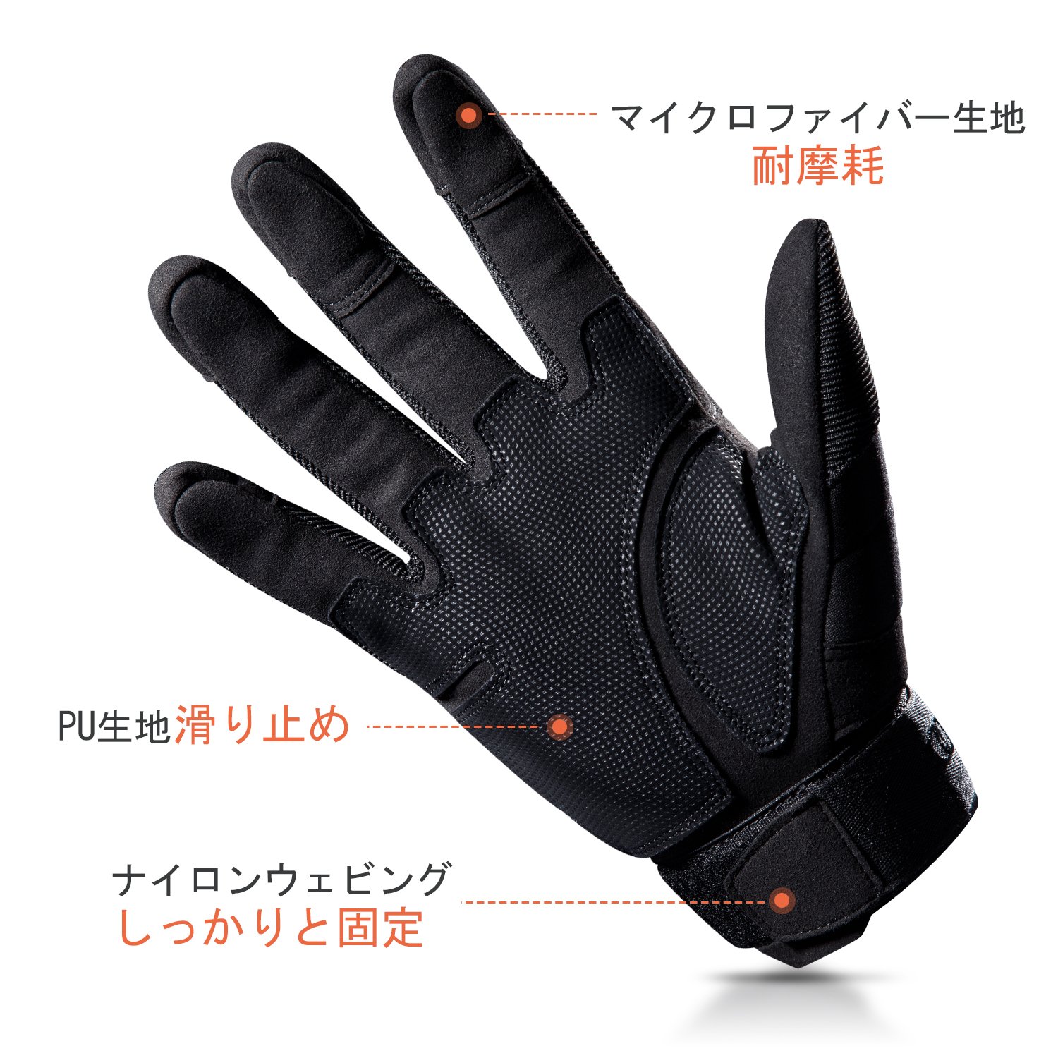 The palm part adopts friction-resistant PU leather material, it protects the impact to the palm and back of the hand, and it is strong against friction and properly protects the hand.
