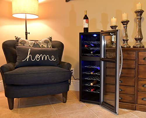 Studio : Avalon Bay Publisher : Avalon Bay Binding : Kitchen Product Description Avalon Bay AB-WINE27DS Dual Zone Wine Cooler The Avalon Bay AB-WINE27DS Dual Zone Wine Cooler keeps your wine safe. Its state-of-the-art thermoelectric cooling system chills your wine perfectly and has two cooling zones that enable you to store red and white wine together in the same unit. The AB-WINE27DS holds up to 27 wine bottles and features an eye-catching, blue LED light, which illuminates and showcases your wine. The temperatures in each zone are fully adjustable, and can be raised or lowered with the push of a button. Special Features Stores 27 Standard Size Wine BottlesDual Cooling ZonesSilent Thermoelectric Cooling System9 Removable Chrome ShelvesBlue LED LightCompact, Freestanding DesignStriking Compact Design The Avalon Bay AB-WINE27DS is a sophisticated cooler with a back cabinet and steel trimmed door that blends seamlessly into any room. It comes fully equipped with nine chrome plated wine racks that slide out to give you full access to your wine. The racks can store up to 27 standard size bottles of wine and each rack can be completely removed in order to make room for larger bottles. The cooler is 19.75 inches long, 13.63 inches wide, and 39 inches high, which makes it easy to store anywhere in your home: kitchen, den, dining room, living room, or home bar.Dual Zone CoolingThe AB-WINE27DS comes with two cooling zones for red and white wine. The upper zone can be set for 44#176;-64#176;F and the lower zone can be set for 51-64#176;F, the perfect ranges for either reds or whites. The temperatures are controlled with two sets of push button controls at the top of the unit. The controls also track and display the temperature in each zone using dual LED displays. Each display is connected to a separate zone, which uses an independent thermostat to pipe in cold air as needed to preserve the flavor, aroma, and structure of your wine.Thermoelectric Cooling SystemThe AB-WINE27DS is powered by a thermoelectric cooling system. It is not on 0